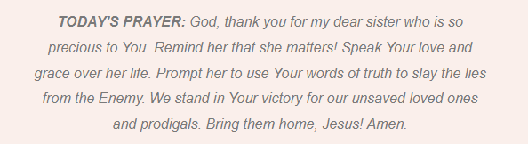 I’D LOVE TO HEAR FROM YOU: Did you need today’s encouragement? If so, hit reply and type “encouraged.” Did you need to be reminded that God has heard every one of your prayers? You’re welcome to share how today’s devotion ministered to you, especially if you needed to be reminded that you’re precious today.